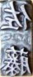 | ネーム焼印 二文字 (枠線付き) 縦書き (特大) 寸法 横20㎜ x 縦39㎜ 12,500円 (消費税込) |